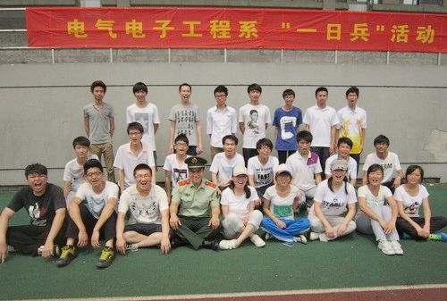 “一日兵”训练活动从早上七点半开始,全体的训练成员准时在操场集合,由电气系体育部部长列队进行热身运动后,教官集合人员并讲解今天上午相关的活动安排。一开始教官让学生们练习了站军姿、军体拳等,在休息间隙中教官还教了学生党员们一些军人们平时生活都必须练习的动作和一些防身术和军体操的示范,学员们认真学习,受益匪浅。最后,大家在红歌《军中绿花》中结束了上午的训练。通过“一日兵”的训练,同学们不仅加深了对部队的了解,而且锻炼了耐力和意志,进一步提高了党性意识。