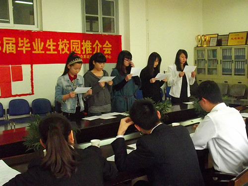 首先,办事处代表向毕业生作了简要介绍,就公司基本情况、发展规划、招聘人员的岗位需求等内容进行了宣讲,希望同学们都能以良好的心态投入到此次应聘当中。随后,正式进入面试阶段,面试主要分为三个部分,首先是应聘人员作简短的自我介绍;随后是每人朗读随机抽到的诗歌;最后是由评委随机提问。虽然面试氛围较为紧张,但是每位应届毕业生都充满自信,把自己最好的精神风貌展现在了考官面前,经过近三个小时的时间,面试圆满结束。