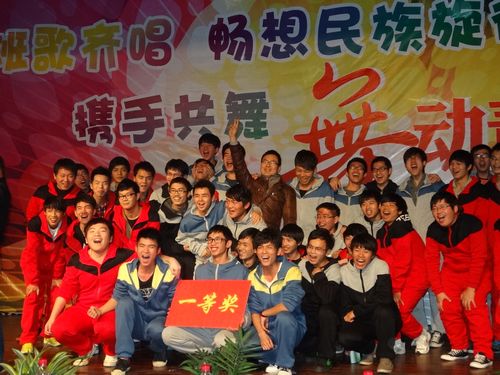 班歌齐唱是机械系一年一届的传统项目,这不仅是机械系党建文化品牌建设中的一项重要内容,也是凝聚班级向心力,展示班级风采的重要途径。2012年12月17日晚在报告厅举办了以““班歌齐唱,畅想民族旋律;携手共舞,舞动青春风采””为主题的第五届机械工程系班歌齐唱比赛。此次比赛,邀请了机械系主任南秀蓉、党总支书记黄加銮、副主任游震洲到场,温州医学院叶圣老师、财会系王丹霞老师及学工办辅导员等五位担任评委,机械系新生班主任作为嘉宾出席了晚会。