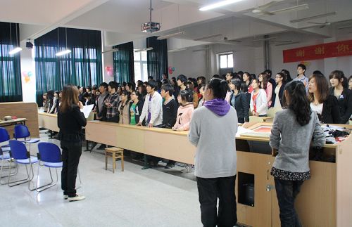 一曲“爱的奉献”引出了“公益爱心”的话题,学院2010年度“十佳百优”爱心公益标兵获得者陈洁、瓯海区优秀义工徐莉慧分别作了典型发言。班会现场组织了“击鼓传花”、“爱心歌词接龙”、“爱的宣言”等互动游戏,并开展了“我与标兵面对面”交流活动,整场班会形式多样、主题深刻、气氛活跃。