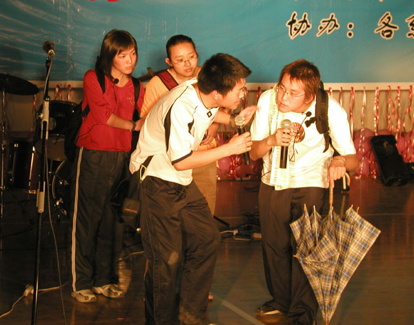 音乐会上,前来捧场的各支乐队轮番上阵,用激情为我院学子编织了一个富有动感和活力的周末夜晚。五彩炫耀的灯光闪烁不停,激昂跌宕的音乐响彻云霄。吉他手、鼓手、键盘手共同演绎的一首首摇滚音乐让整个体育馆沸腾起来。观众们的心随着旋律澎湃起来,激情也随之迸发出来。