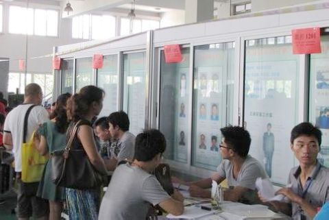 大门口志愿者们在认真接待新生