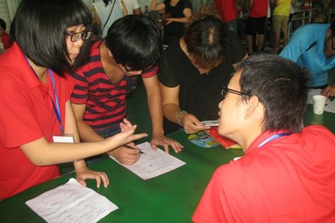 耐心热情地为新生办理手续的志愿者们