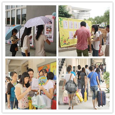 在财会系迎新现场,有这样一队人,胸前别着卡通笑脸的“微笑章”,微笑地向新生解答疑问,引导办理手续,这就是财会系的志愿者。本着“微笑为新生服务的”宗旨和引导新生独自办理手续的原则,财会系制定了清晰的服务流程和人性化、融入会计和金融专业色彩的宣传展板,入学手续交由志愿者“一对一”协助完成,家长由志愿者引导在101休息室等候,他们不畏顶头烈日,一条龙周到热情服务,有条不紊的引领新生完成报道的所有程序。整个报到现场,一片繁忙,井然有序,有陆续完成报名流程的新生,有观赏系里技能展示展板的学生家长,有脸上一直洋溢着微笑的志愿者们。为了进一步使新生和家长更好地了解财会系师资力量、校园文化品牌建设以及方便与班主任联系,财会系特印制了爱心联系卡、温馨连线、新生特辑报和人文素养书目推荐以及致家长的一封信。