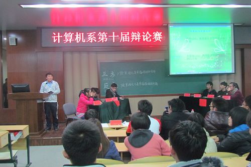 12月25日晚,教学楼2-101教室热闹非凡,计算机系第十届辩论赛决赛在此隆重举行。