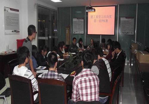 据悉,在首轮PK赛后,产生的21位选手将以自己组建竞选团队的形式参与到学院的学习风尚奖竞争中。建工系也将以评选“学习风尚奖”为依托,以“三早一晚”活动为载体,大力营造系部让“努力学习成为一种风尚”的良好学习氛围,在校园中形成一股促进学风建设的良好风气。