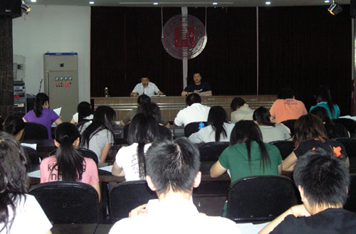 招生就业处根据学院领导指示,结合2008年自主招生工作,对招生宣传工作进行了精心准备,周全部署。5月初完成第一轮自主招生宣传后,立即又着手第二轮招生宣传工作。5月14日,行政楼多功能厅召集全院130多名学生宣传员,举行招生宣传动员大会。招生就业处副处长郑国波、吴建明和各系专职招生辅导员参加了会议。
