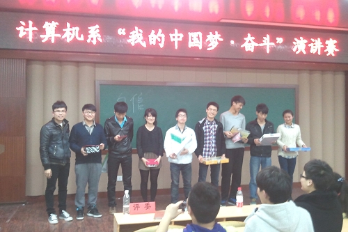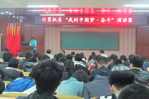 为更好的理解和阐释“中国梦”的内涵,提升同学们的口才能力,3月27日晚在2-101计算机系举办了以“我的中国梦•奋斗”为主题的演讲比赛。