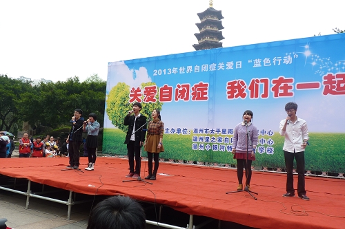 4月2日是世界自闭症日,也是第六个世界自闭症日。2013年4月2日早上,电气系的志愿者参加了温州小银河特殊教育学校在市区松台广场举行的大型宣传义演活动,为这次活动献上了我们微薄的力量。