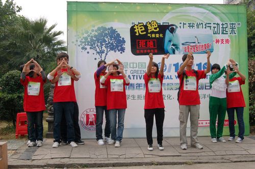2010年10月10日,由温州职业技术学院建筑工程系发起的以“拒绝气候变化,拒绝在海洋中生活”为主题的温州市大学生环保行为艺术展在市区拉开。
