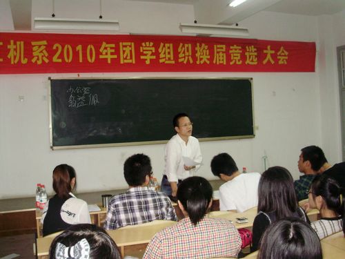 10月13日下午2点,计算机系2010年团学组织换届竞选大会在2号教学楼412教室举行。来自我系团学组织13个部门的40余位同学参加了本次竞选活动。系团学指导老师、系学生会主席、系团总支副书记以及各部门部长出席了本次竞选活动。大会由系学生会主席主持。