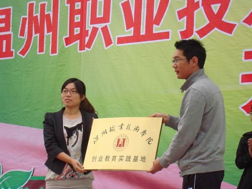 工商系为杭州顶园食品有限公司颁发“温州职业技术学院创业教育实践基地”牌匾
