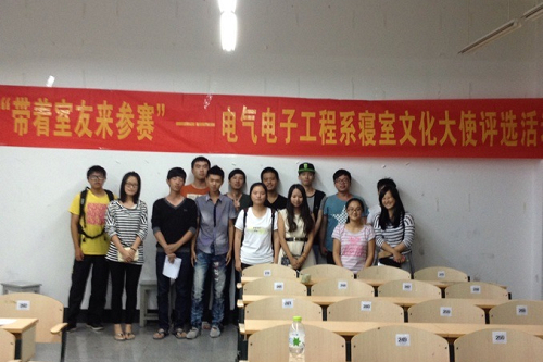 学生宿舍是学生在校学习生活的重要场所,是对学生进行文明素质教育的重要阵地,是反映大学生精神风貌的窗口,为切实加强学生宿舍的管理,营造温馨、舒适的学习环境,发挥其在精神文明建设中的载体作用,电气电子工程系于近日举行了“带着室友来参赛”寝室文化大使评选活动。