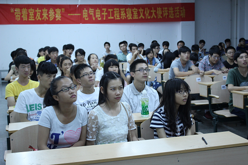 此次“带着室友来参赛”寝室文化大使评选活动共吸引了我系30位学生报名参赛。活动当天,我系共组织了50位学生代表到场观看评选活动,并作为学生评委现场为选手们打分。为了能最大程度地战线自己的风采,夺得进入寝室文化大使评选第二轮网络评选的机会,各位选手都献上了自己精心准备的项目。有的选手将自己寝室生活的点点滴滴做成PPT,进行了图文并茂的演说;有的选手和室友在现场高歌一曲,展示了自己过人的唱歌天赋,选手们精彩纷呈的表演,也引来了评委们的阵阵掌声。