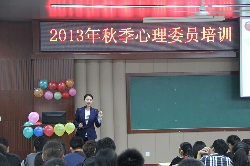 为加强我院大学生的心理健康意识,提高其自我调适能力,促进大学生心理健康工作的开展,11月6日下午,由我院心理发展委员会举办的“班级心理委员培训”第一场培训课程在好学楼101室正式举行,此次培训由学院心理健康教育中心赵生玉老师担任主讲,全体大一大二班级心理委员200余人参加。