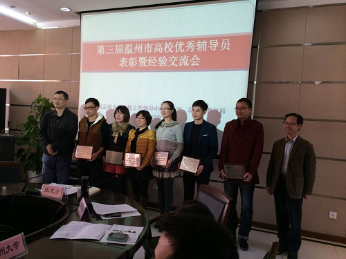 12月10日,在温州市教育局召开了第三批温州市优秀高校辅导员表彰会暨辅导员工作座谈会上,我院杨晶晶、马德龙、张芳芳、罗瑞奎、徐蓉、林景、李文静、张昌夫、陈德勇等九名教师荣获“温州市优秀辅导员”称号。本次第三批批优秀高校辅导员评选工作由中共温州市委高校工作领导小组、温州市教育局联合举办,经学校推荐,市委高校工作领导小组办公室和市教育局组织评选和考察,全市高校共有76名教师获得该项荣誉。