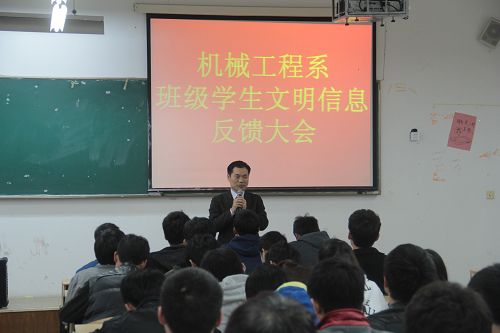 据悉,机械工程系“班级学生文明信息反馈大会”每月都将举行一次,随时掌握学生信息,及时反应学生动态。同时,在敏行楼4楼增设意见箱,听取学生的意见和看法,更好地推进机械系学生文明建设。