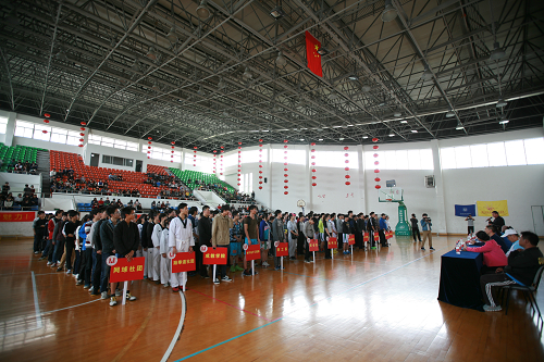 4月2日下午,学院第十二届体育节暨2014篮球联赛开幕式、院学生网球和跆拳道社团启动仪式在我院体育馆室内篮球场隆重举行。院学生处处长叶吉波、副处长吴冰、公共教学部主任赵岳峰、体育教研室主任、相关体育教师、全院各系部18支代表队、院学生网球和跆拳道社团成员出席了本次开幕式。