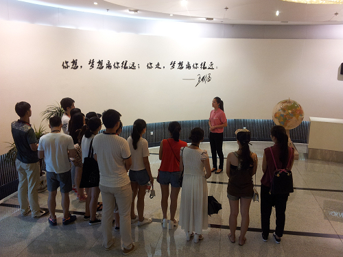 实习第一天,实践队的实践内容是熟悉公司环境、了解企业文化。在奥康大学宿舍安顿下来之后,实践队员们首先参观了奥康企业文化展示中心,在这里,大家了解到奥康的核心价值观是“诚信、创新、人本与和谐”,听取了奥康集团的发展历程介绍,初步知晓了奥康集团旗下拥有的多个品牌,以及每一个品牌的设计理念与产品特色。随后,在企业指导老师的带领下,参观了奥康集团电子商务大楼,大家认真仔细地参观了每一层楼的办公区域和车间,初步了解奥康集团电子商务部门的机构设置和岗位职责,也了解到了每一个岗位的重要性。