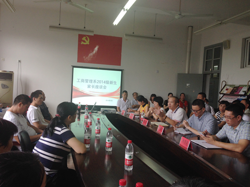 为进一步加强家校联系,更好促进大学生成长成才。 9月11日,工商系在善学楼208会议室举行了2014级新生家长座谈会。系主任朱长丰、系党总支书记李建中、副主任何海怀及系各科室负责人参加了本次座谈会,会议由系副主任何海怀主持。