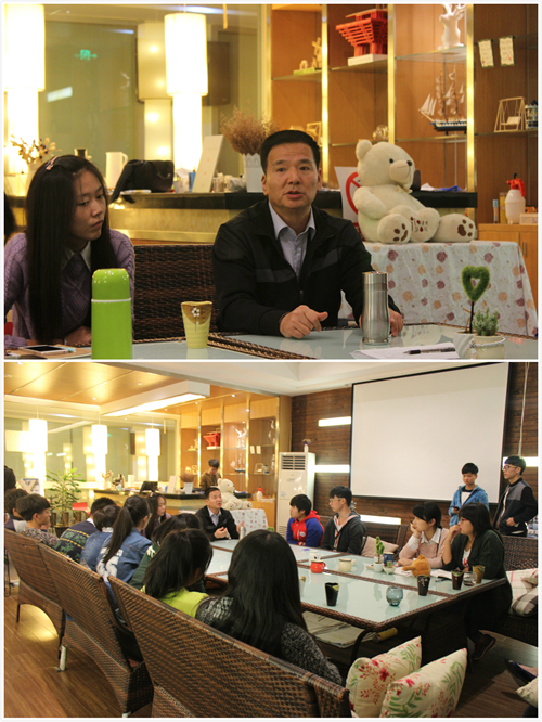 本次交流的主题为“关注时事”。活动初始,徐老师以“温州房价”为切入点,用精炼的语言进入主题,徐老师通过自己的生活经历,提醒学生要勇于探索,敢于发现,要有不怕死的精神,同时也指出学生在平时的工作和生活中应该注重观察。在交流中,徐老师与学生对当下一些政策与新闻进行了分析和讨论,如香港占中事件,APEC大会等。整个活动持续了一个半小时,活动气氛融洽,大家相互交流,收益颇丰。