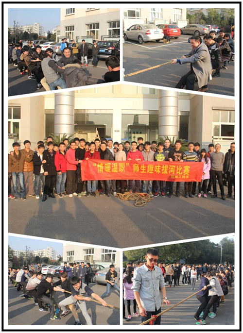 在激烈的角逐下,前三强诞生了,分别是数控1301班,数控1303班,模具1301班。拔河比赛一直是机械系最受同学欢迎的集体活动之一。师生拔河比赛使得同学们的集体荣誉感得到加强,使师生间的关系更加巩固,实现了真正的师生零距离。
