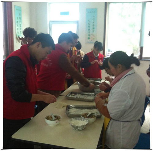 志愿者们自当日早上8:30出发,历经一个半小时的车程来到了三郎桥残老院。本次活动主要由“慰问老人”、“残养院大扫除”、“纸鹤放飞”三大部分组成。志愿者分为四支队伍,每队配置队长一名,分工明确、效率显著。活动中,志愿者对老人表现出了极大的热情。个别腿脚不便的老人在我们志愿者的热心搀扶下走出房间沐浴春日暖阳。在“清扫队”的努力下残养院整个焕然一新,每一个角落都被清洁的干干净净。一名智障青年对我们“折纸队”的工作展现出浓厚的兴趣,志愿者没有丝毫不耐的手把手教他操作。中午,为将“不为残老院带来一丝麻烦”的宗旨贯彻到底,我们的志愿者亲手包制饺子解决了午餐。志愿者队伍负责人钟凯盛同学表示:“对于慈善,一次显然不够带来影响,那么我们就两次、三次更多地奉献自己的绵薄之力,总有一天我们能影响身边的人们重视这份伟大的工作。助人之心就是对抗不幸最有效的武器。”