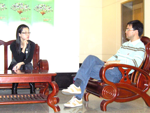 青年教师彭茜茜向丁金昌院长汇报工作情况