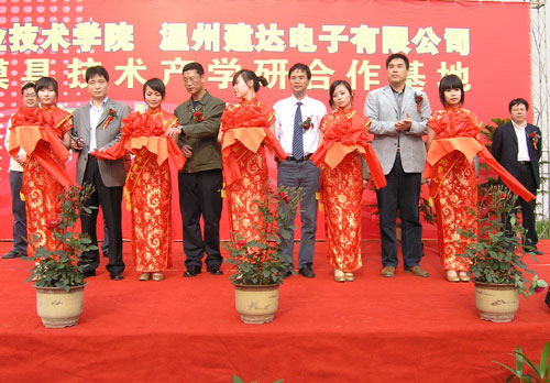 4月23日,我院在工业中心楼前隆重举行了精密模具技术产学研合作基地落成仪式。温州市科技局副局长金作崇、温州市模具协会常务副会长黄联鑫、浙江省塑性工程与模具分会理事长胡树根、温州科技局综合处副处长林海、乐清市白象镇党委书记潘云夫、乐清市白象镇副镇长周琳彬、乐清市经贸局张奎清、温州建达电子有限公司总经理郑有义等出席仪式。温州众多模具知名企业老总到场祝贺,共同见证了精密模具技术产学研合作基地的落成。