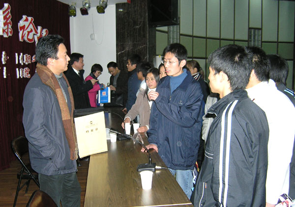 2003年度经济风云人物、日丰打火机公司董事长黄发静与大学生面对面