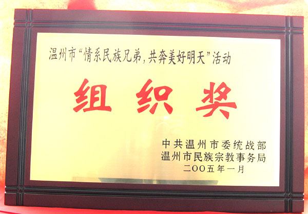 在2005年1月17日上午召开的全市统战工作表彰大会上,我院党委统战部获2004年度统战工作创新奖二等奖,创新内容是利用高校智力优势建立大学生“三下乡”实践基地;同时获温州市“情系民族兄弟,共奔美好明天”活动组织奖。此外,吴建明同志还荣获市“情系民族兄弟,共奔美好明天”活动先进个人;刘世长同志《试论加强党的执政能力建设与坚持党的统一战线》一文获2004年度全市统战理论研究优秀成果三等奖;张艳同志《我市少数民族中小学教育问题的探索》一文获温州少数民族经济社会发展研讨论文优秀奖。