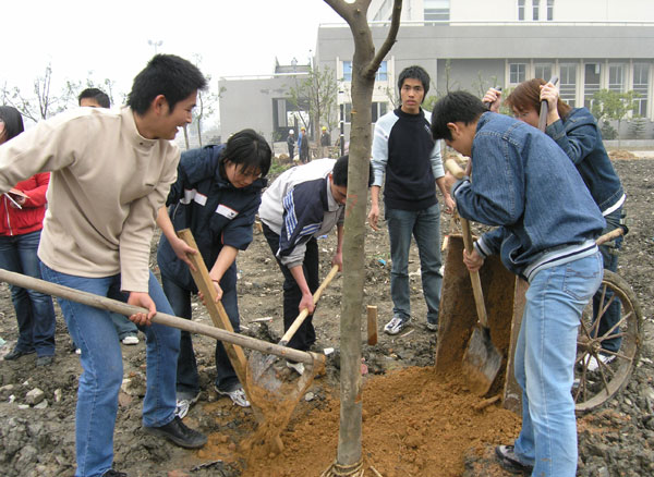 3月12日,是我国第27个植树节。在植树节来临之际,我院师生在挥锹培土,在体育馆旁边的空地下种下“奥运林”,以植树的形式来迎接2008年北京奥运会的到来。