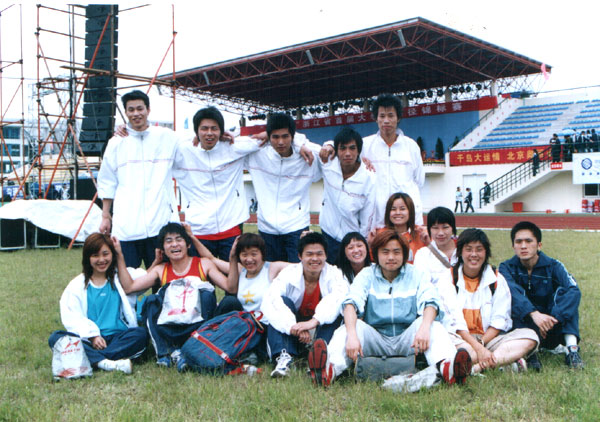我院田径队在比赛场上合影留念
