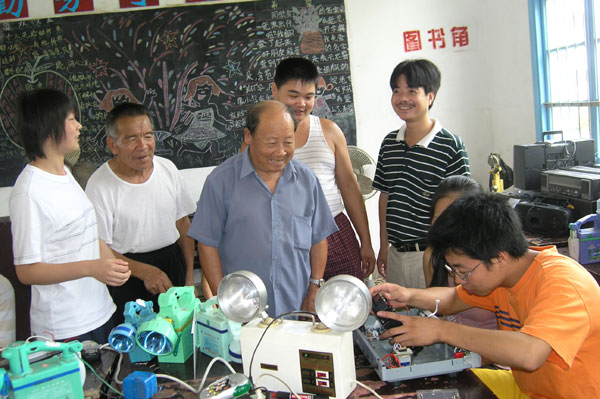 近日,我院“红色之路”暑期实践小分队50多位大学生奔赴素有“浙江延安”之称的革命根据地——平阳凤卧安寨扎营,举行了为期半个多月的暑期实践活动。在红色山区,大学生们开展了文化支教、科技下乡、农村青年培训、“双百结对”、公益服务、“三农”调查、环境调查等活动。其中,免费家电维修队最受当地村民欢迎,村民们甚至搬出了家中搁置许久的“老古董”,坏旧的冰箱、电视机、电话机、电风扇等电器摆满了大学们的驻扎地。在酷暑和烈日下,我院电气专业的暑期实践生们用自己的专业知识一一解决了村民的“难题”,让村民脸上乐开了花。