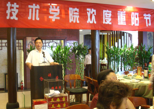 学院党委副书记倪集崇到场参加了重阳节庆祝酒会。他表达了对全体老同志的良好祝愿,希望每一位老同志都能拥有一个绚丽多彩的晚年。广大离退休教职工为学院工作的进展而感到高兴,对学院今后的发展和建设充满希望,他们希望学院的事业能够蒸蒸日上,越来越红火!