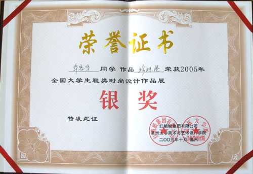 日前,我院轻工学院鞋样设计与工艺专业学生华荣华在2005年全国大学生鞋类时尚设计大赛中摘取银奖,鞋样设计专业庞凯、金柳燕同学获得入围奖。