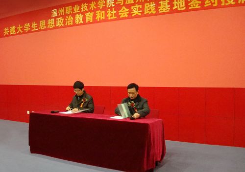 12月15日下午,我院与温州科技馆就共建大学生思想政治教育和社会实践基地在温州科技馆举行签约授牌仪式。温州科技馆馆长陈坚勇和我院党委副书记倪集崇代表各自单位签署协议并分别致辞。参加签约仪式的还有温州科技馆副馆长姜经忠,我院公共教学部主任赵岳峰、副主任王永江等。