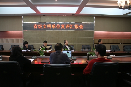 学院院长丁金昌,党委副书记倪集崇和精神文明建设指导委员会成员参加了汇报会。倪集崇副书记分五个方面向检查组详细汇报了我院省级文明单位建设的基本情况,以及两年来所取得的创建成果。丁金昌院长在会上表示学院党委、院长室一直重视加强和改进文明单位创建工作。