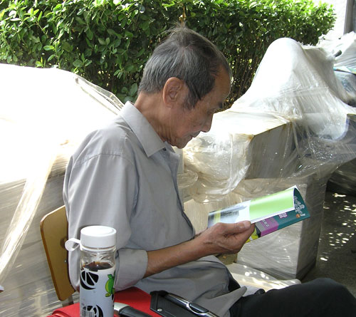 新生家长认真翻看《新生手册》