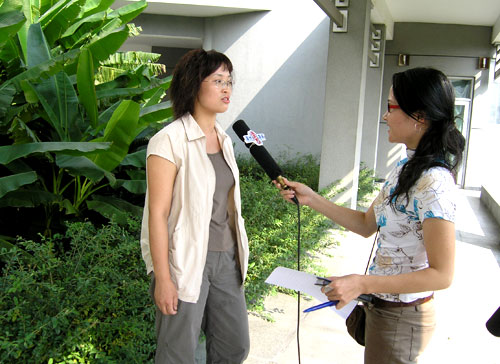 招生办主任李小娟接受记者采访