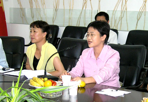 人文系主任、民盟盟员、市政协委员丁丽燕(图右一)在会上发言