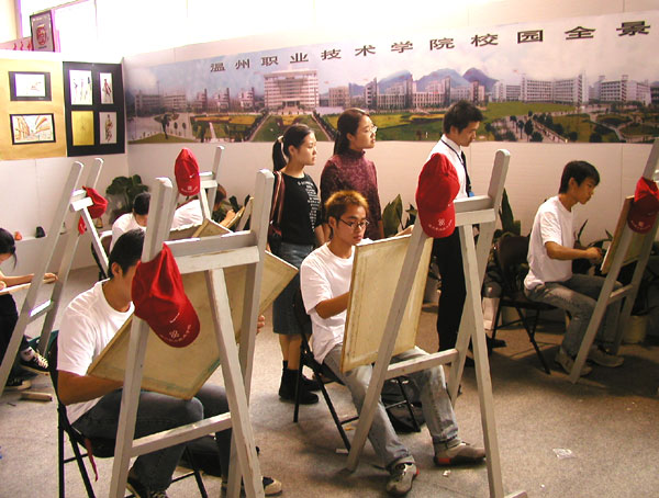 一批学生在轻博会上现场设计鞋样作品和素描作画,向参观的游客亮出了自己的“真本领”。很多温州市民举着大拇指说:“这才是真本事!”而有更多的企业老板留下了现场做“秀”学生的联系电话,并希望他们毕业后能到企业工作。