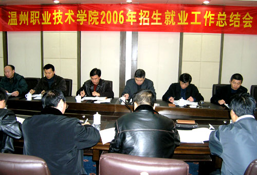 2006年12月16—17日,我院在泰顺香溢大酒店会议室召开了2006年招生就业工作总结会。会议总结了今年招生和就业的相关情况和工作经验,并提出了《关于温职院生源基地建设的初步设想》和《关于“就业工作品牌”建设的初步思考》两个讨论稿。学院党委书记周锦成、院长丁金昌,招生就业处等相关部门负责人,各系书记、辅导员参加了会议。副院长夏晓军主持会议。