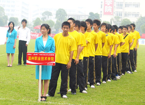 5月26日,“2007年可口可乐杯浙江省大学生足球联赛”在我院足球场揭开战幕。我院党委书记周锦成,浙江省大学生体育协会足球分会秘书长谢文培、副主席董海宇出席了开幕式。周锦成书记致开幕词。开幕式由我院副院长夏晓军主持。在随后进行的揭幕战中,我院足球队以4:1击败浙江工贸职院队。