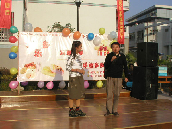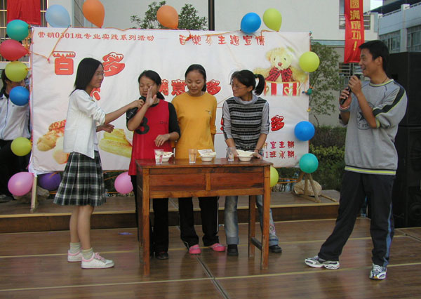 营销0301班同学精心策划的这堂课是一场以互动的形式为宣传手段的品牌推介会。活动中邀请了众多让同学们熟知的“校园歌手”,还举行了娱乐、智力游戏,吸引了众多的同学驻足观看,更多的同学加入到了“百乐多”场上台下互动游戏中。通过游戏再次加深了校园学子对“百乐多”品牌的了解,达到了品牌宣传的目的。