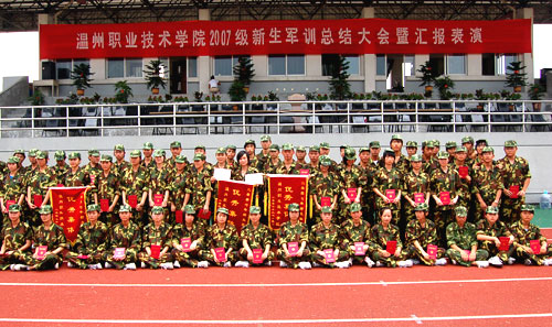 9月15日下午,我院“2007级新生军训总结大会暨汇报表演”在学校田径场隆重举行。我院院长丁金昌,温州军分区政治部副主任沈业之,学院领导倪集崇、夏晓军、兰玉景、王向红、何忠以及温州海防营陈明教导员等出席了会议。大会由副院长王向红主持。丁金昌院长与温州军分区政治部领导一同检阅了军训队伍。