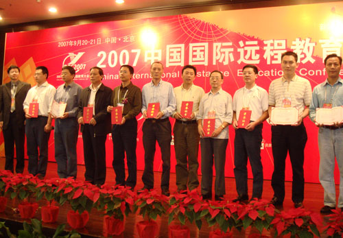 2007年中国国际远程教育大会颁奖现场(图左六为我院成教学院远程部主任王敏老师)