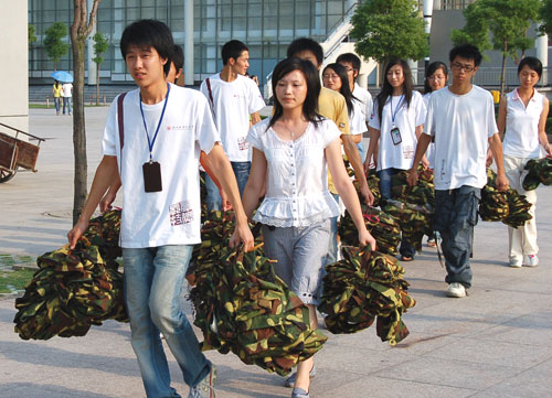 团委副书记金建孟老师说:“以往每年在军训结束之后,学校操场上、宿舍里面都会有很多被丢弃的迷彩服,这些迷彩服同学们都只穿了几天,这样的丢弃既可惜又造成了浪费。而最近每天进出高教园去的一些建筑工地,会发现很多民工为了维修道路,长期在烈日下工作,穿的又都是没有遮阳效果的衣服。就在想如果能把学生军训完不用的服装捐赠给有需要的民工,不是可以让‘橄榄绿’继续发挥余热了么?”一些学生说,军服大部分都不是很合身,而且又不美观,军训后穿的几率几乎很小。而且军服十分厚重既难清洗,又不容易保存,而且十分占空间。这样捐赠掉,既可以减少浪费,又让我们做了一件有意义的事,何乐而不为呢?