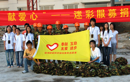 9月25日下午,我院团委几名学生干部把200多套军训迷彩服清洗干净后,以捐赠的形式送给每天在烈日下工作的高教园区建筑工地上的民工们。这些迷彩服都是由我院大一新生捐赠的。今年,我院团委在新生入学之时就向全院新生发出了倡议,组织了“迷彩服捐赠活动”。活动中,有1000多名大一新生同学把迷彩服清洗的干净,并小心翼翼地将其折叠整齐送到团委捐赠中心。民工们看到送过来崭新的迷彩服,脸上露出了开心的笑容,说:“天气快要转凉了,这些军训服正好派上用场。平时,在工地上,衣服很容易脏,也容易破。现在不用为找不到合适的衣服发愁了。”据悉,我院团委还正积极联系其他建筑工地,把剩余的800多套衣服都赠送给民工。