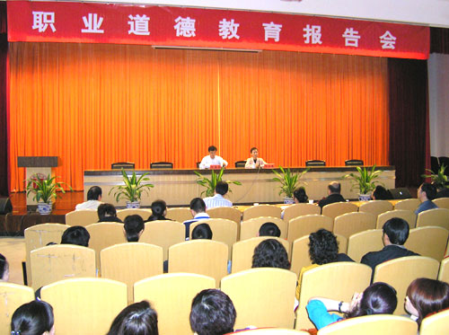 4月30日,我院特邀请了温州晚报总编助理郑雪君在学术报告厅举行了职业道德教育报告会。学院500多名教职员工参加了报告会。报告会由学院党委副书记倪集崇主持。